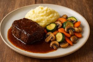 VIANDE du JOUR : Joue de boeuf confite avec purée maison et poêlée de légumes